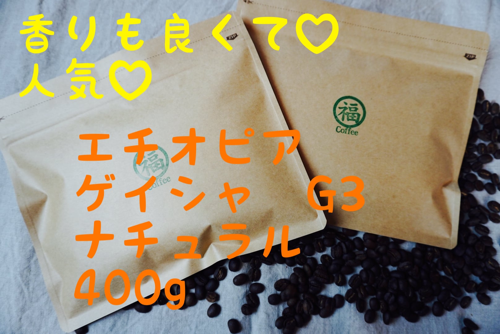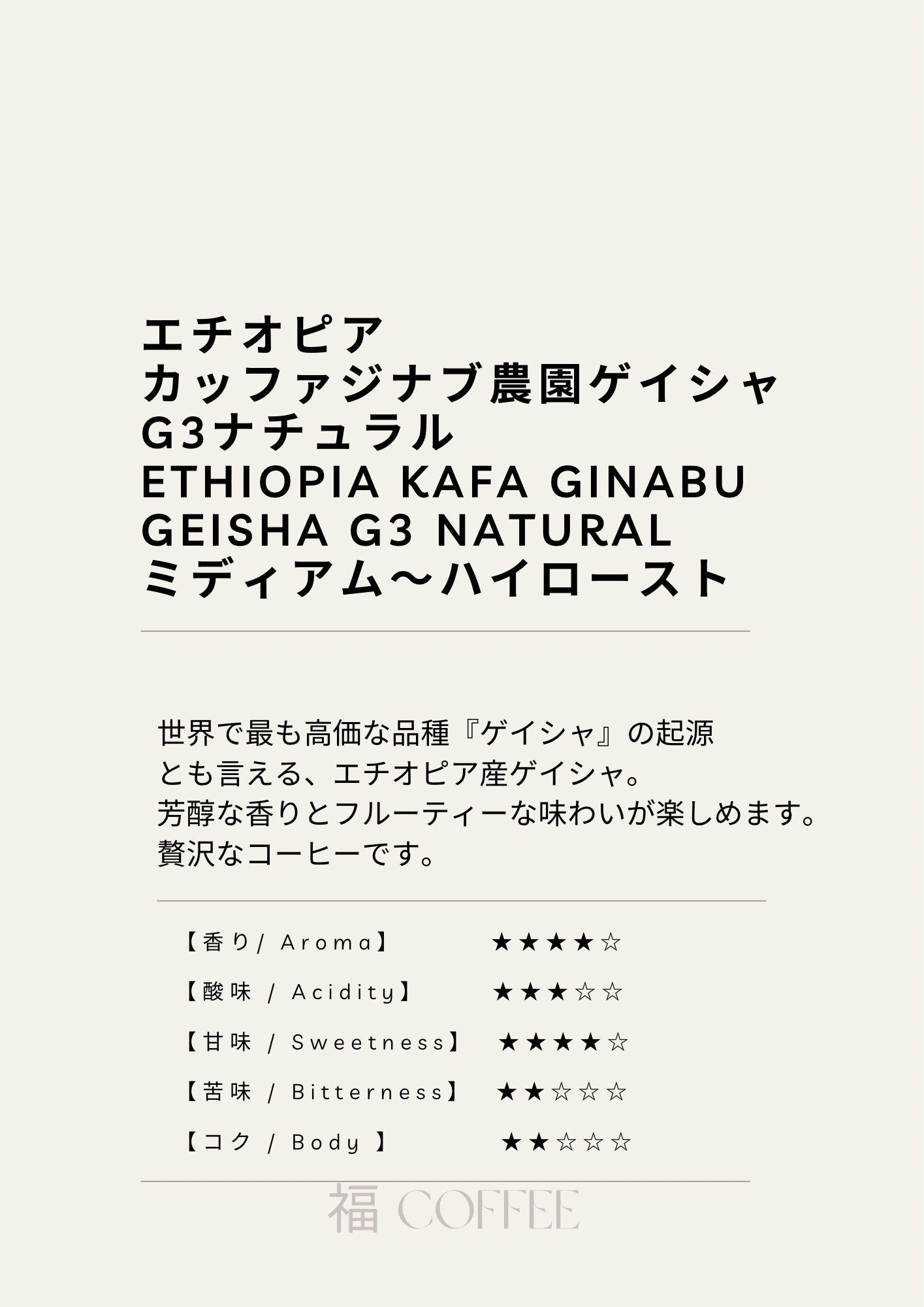 焙煎豆(生豆量400g)浅煎り エチオピア カッファジナブ農園ゲイシャG3ナチュラ